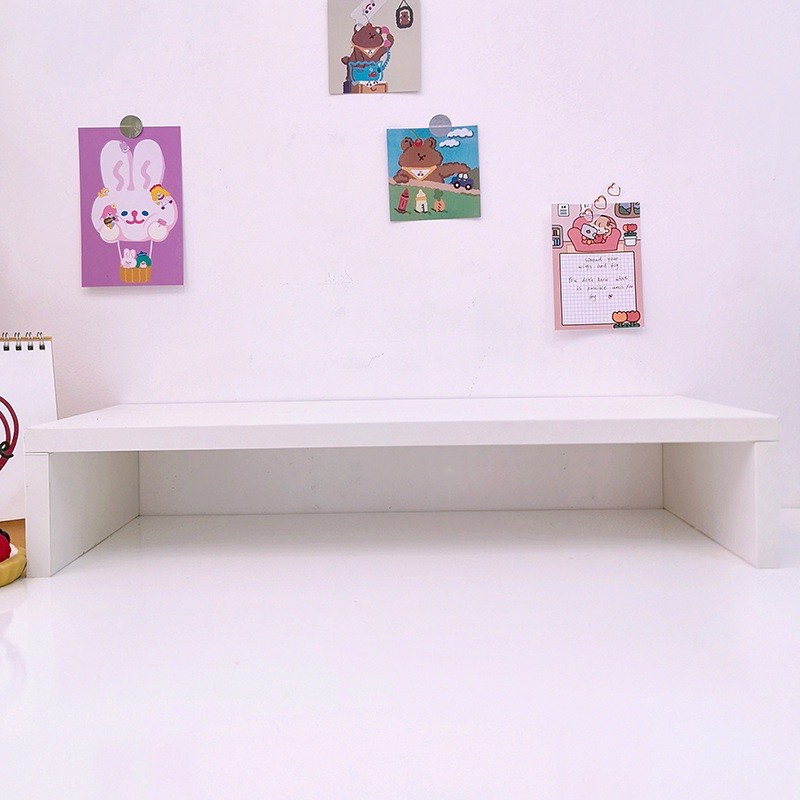 Giá Gỗ Để Bàn Đa NăngTiếp thêm 1 mẫu kệ gỗ màu trắng decor bàn học/ bàn làm việc cho các bạn đây nhé. Gỗ MDF xịn xò, màu trắng trang nhã, chịu lực 40kg, để kê màn hình máy tính cho ngang tầm mắt, bên dưới vẫn để được đồ dùng cá nhân, sách vở gọn gàng