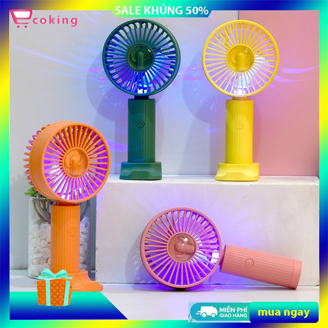 @@@QUẠT MINI CẦM TAY CÓ ĐẾ,XẠC USB,CÓ ĐÈN LED 7 MÀU CỰC ĐẸP @@@@quạt cầm tay ,để bàn rất tiện lợi cho chúng ta ở mọi lúc mọi nơi .trong nhà hoac ngoài trời,đi hoc ,đi làm ,đi chơi,đi tắm những lúc nắng nóng mình cần một bờ vai tựa vào đó là quạt cầm tay xạc usb thiết kế nhỏ gon ,nhẹ nhàng dễ dàng di chuyển mẫu mã đa dạng nhiều màu sắc quạt nhanh mạnh không có tiếng ồn rung đem lại cảm giác mát mẻ thoải mái cho người dùng. quạt có thể sử dụng liên tục 2>3h có đế đặt nếu bạn mỏi tay...