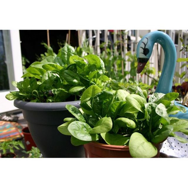 Bạn cũng có thể trồng rau chân vịt cùng các loại rau khác trong cùng một chậu như rau cần tây, rau cải, rau cải xoăn, hành, củ cải, rau diếp và dâu tây.
