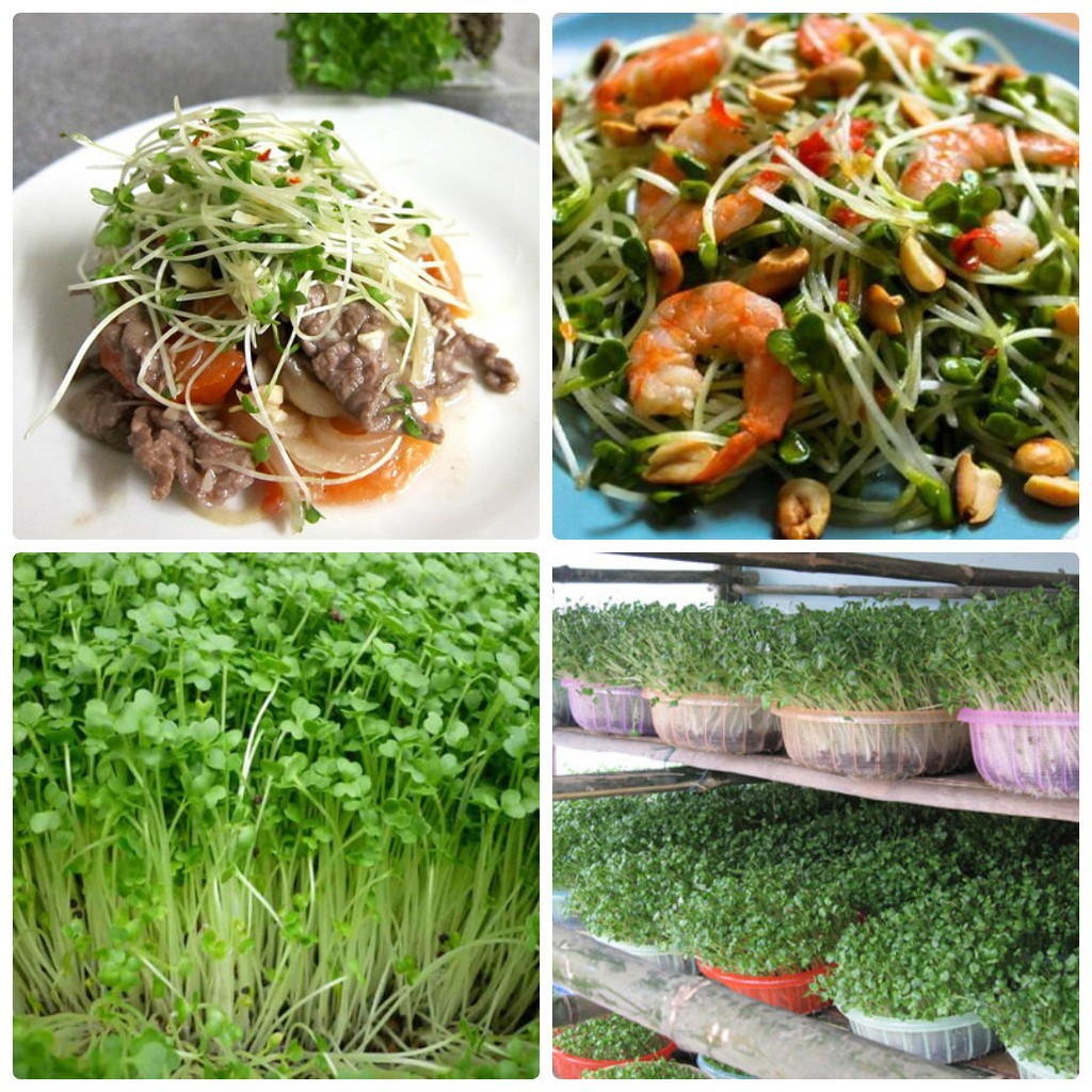 Rau mầm được sử dụng trong việc chế biến thành các món ăn đa dạng như xào, lẩu, súp, các món cuộn, trộn salad hay ăn kèm cùng các loại bánh, thịt, hải sản,… Các loại rau mầm cung cấp nhiều chất dinh dưỡng nhất như: súp lơ xanh, đậu tương, rau cải, …