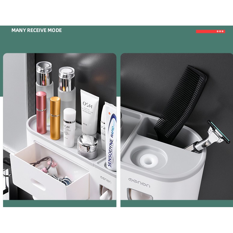 Giới thiệu [XẢ KHO] Kệ Nhà Tắm Thông Minh OENON Kèm Cốc Hút Từ Tính Bộ Nhả Kem Đánh Răng tự động - asta store