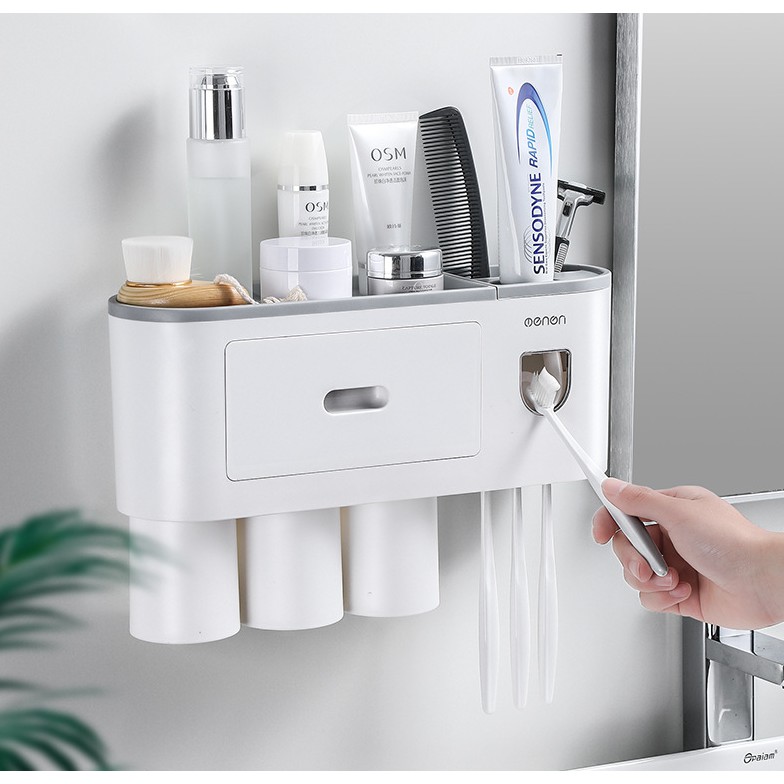 [XẢ KHO] Kệ Nhà Tắm Thông Minh OENON Kèm Cốc Hút Từ Tính Bộ Nhả Kem Đánh Răng tự động - asta store