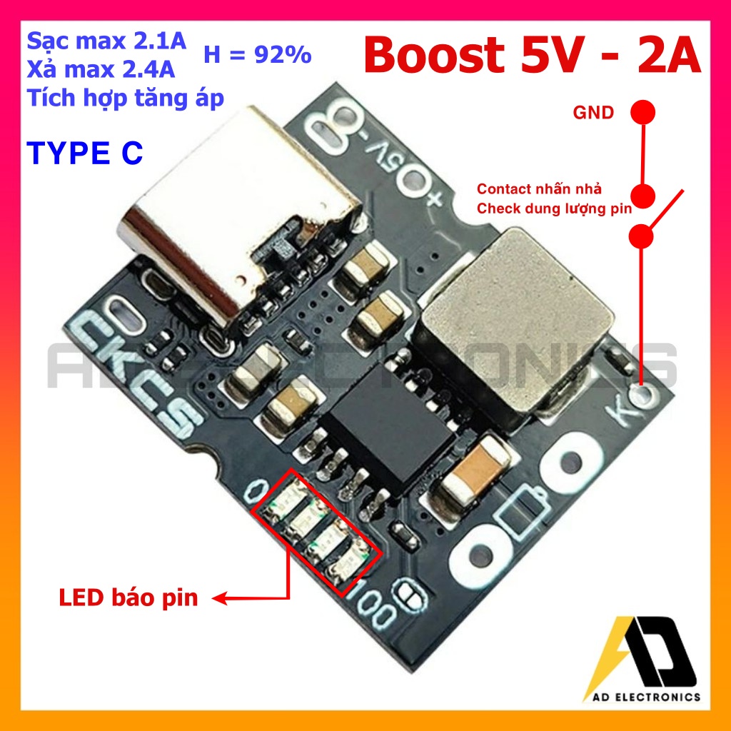 ***MẠCH NHẬP CHÍNH HÃNG TỪ NHÀ MÁY GIA CÔNG***CÁC THƯƠNG HIỆU CKCS ĐIỀU LẤY HÀNG TỪ NHÀ MÁY NÀY*** CÓ LED BÁO MỨC PIN ***Mạch tăng áp và giữ áp ổn định ở mức 5V với nguồn vào pin 18650 - lion - lithium 3.7v