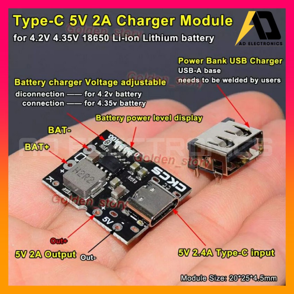 Máy tính & Laptop > Linh Kiện Máy Tính > Nguồn Máy Tính || [Giá Gốc]Mạch Tăng áp Type C - Tích Hợp Sạc Xả 5V 2A, sạc dự phòng 1S dùng cho pin 18650 - pin lion - lithiumCòn hàng