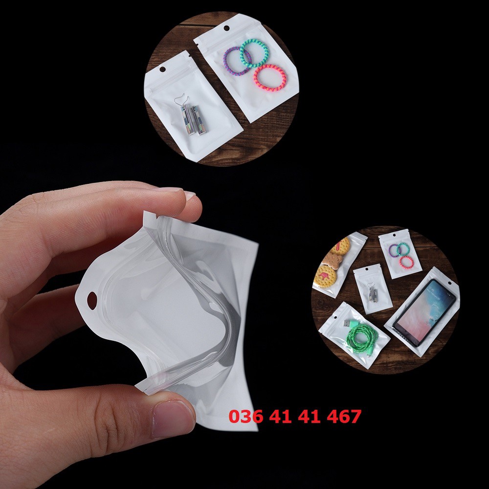 [Giá Gốc Tận Xưởng] Combo 100 Túi ZIP khóa có lỗ treo có đục lỗ mặt trắng sữa đựng đồ trưng bày