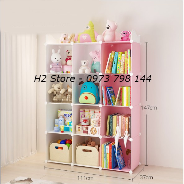 [GIÁ HỜI] - TỦ NHỰA GHÉP ĐỂ ĐỒ ĐA NĂNG CHO BÉ GÁI 12 Ô MÀU TRẮNG, HỒNG