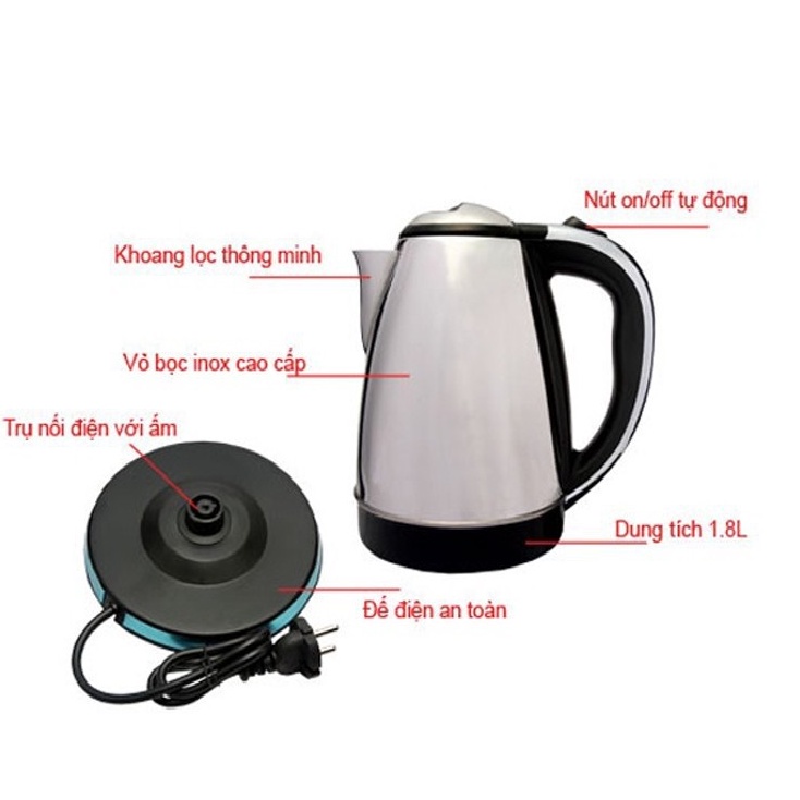 Giới thiệu Ấm Siêu Tốc Giá Rẻ, Dung Tích 1,8L, Inox Chống Gỉ Sét - Ấm Nước Siêu Tốc