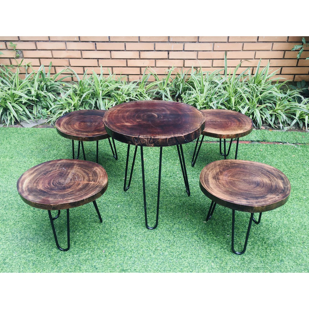 Giới thiệu [Giá hủy diệt] Bàn trà cafe gỗ xà cừ ngoài trời D = 36 - 40cm chân hairpin cao 50 - 2 thanh shop HP Decor