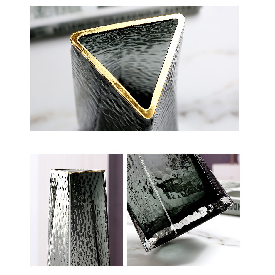 [Giá hủy diệt- Bao bể vỡ] Lọ hoa thủy tinh sơn vàng cao cấp, phong cách Bắc Âu Nordic, miệng tam giác độc lạ[Có sẵn]