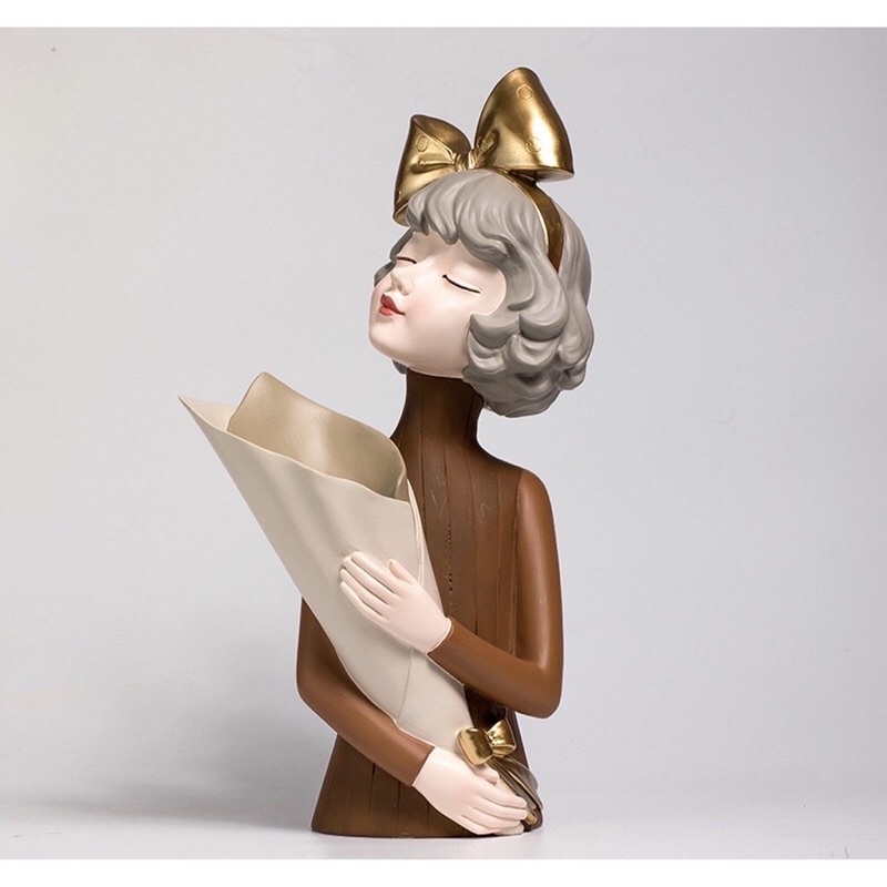 Sản phầm: Bình hoa cô gái- Cô gái cắm hoa,ôm hoa-Lọ hoa cô gái-Tượng cô gái trang trí decor-Chậu trồng cây hình cô gái