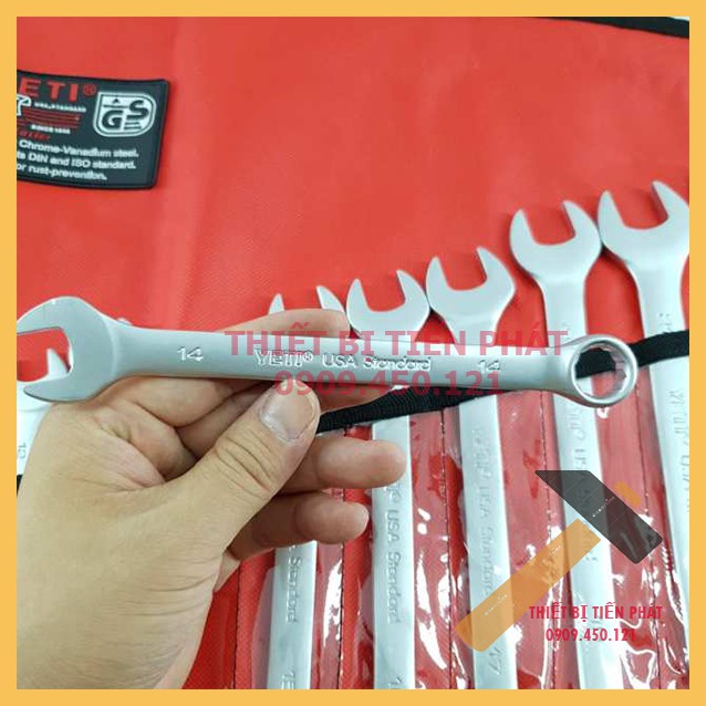 - Bộ cờ lê 14 chi tiết YETI gồm 14 chiếc '' bộ cờ lê '' có một đầu hở và một đầu tròn với vòng miệng khác nhau như: 8, 9, 10, 11,12,13,14,15, 17, 18, 19, 21, 22, 24 rất đa dạng để bạn có thể sử dụng để sửa chữa nhiều máy móc khác nhau.