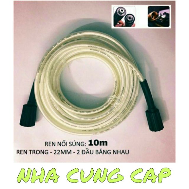 Dây xịt rửa xe áp lực cao 10M trắng chịu được áp lực cao gồm 2 loại:-1 đầu ren 22mm 1 đầu ren 14mm