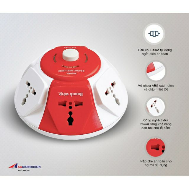 Đặc điểm nổi bật/tính năngAn toàn 99.9% cho người dùng với tính năng tự ngắt điện khi quá tải (breaker)