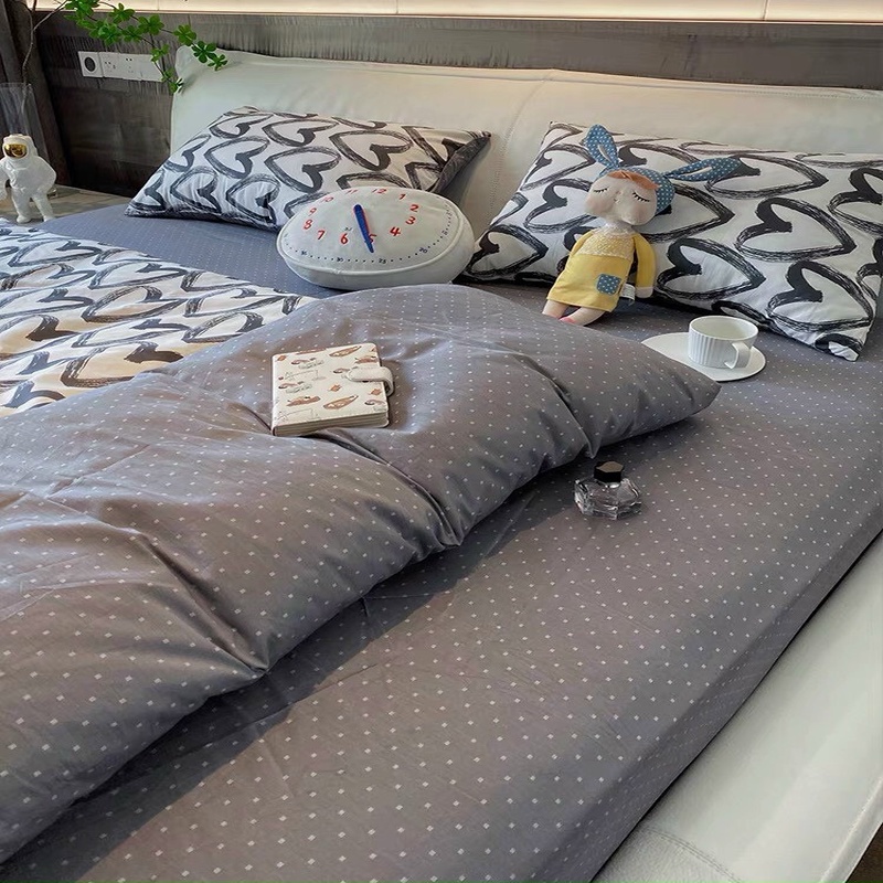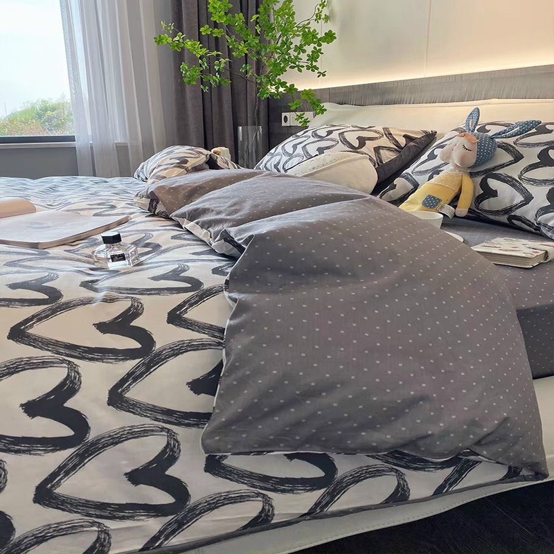 Giới thiệu [Giá hủy diệt] Bộ Vỏ Chăn Ga Gối Cotton Tim Xám✨m6/m8/2m -Set 4 Món Trái Tim Phong Cách Hàn Quốc Siêu Xinh
