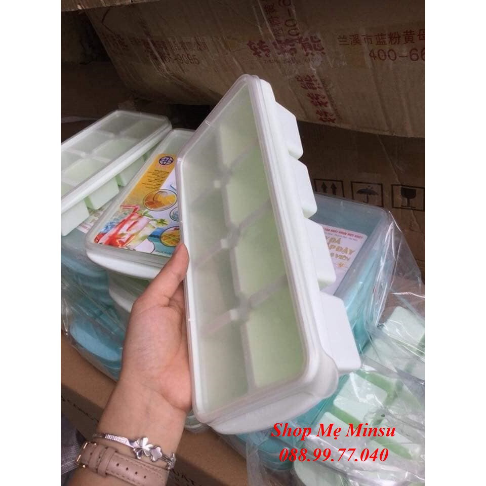 KHAY ĐÁ CÓ NẮP ĐẬY 8 NGĂN.✔Khay có phần nắp đậy đảm bảo an toàn vệ sinh tránh bám mùi của đồ đông lạnh khi để cùng ngăn.