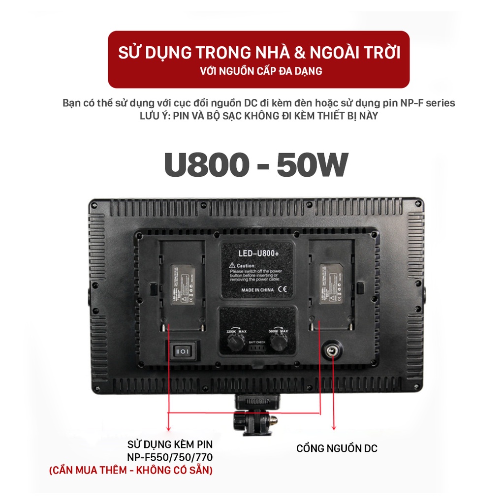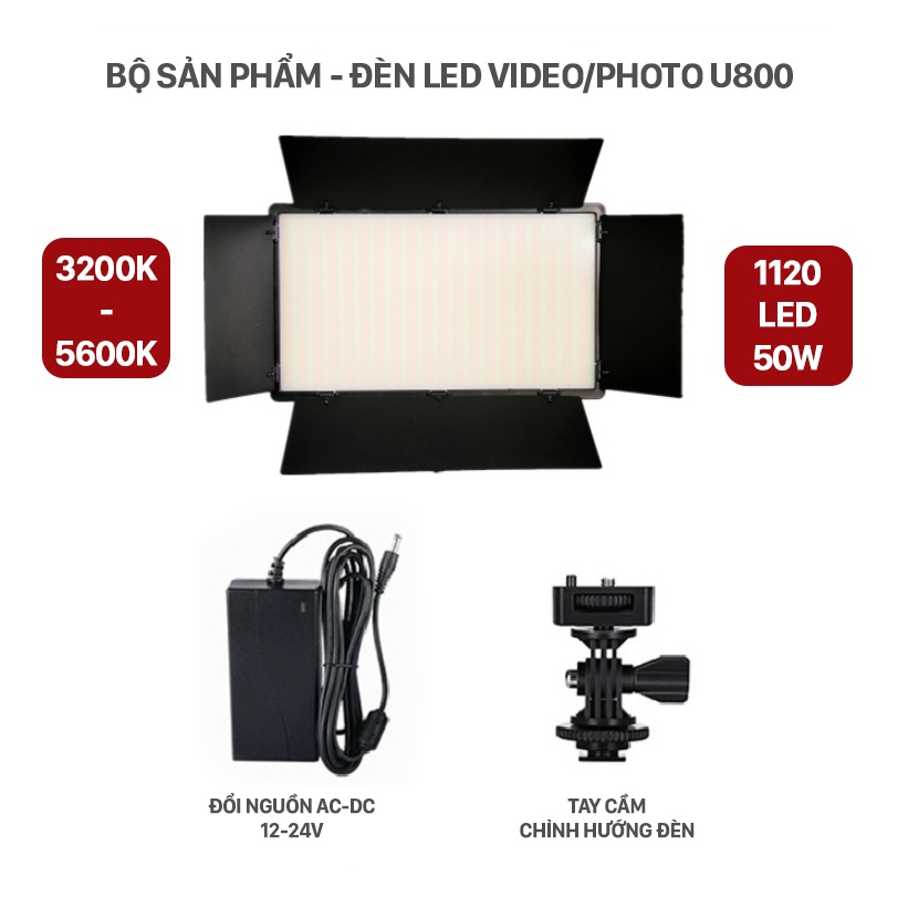 [Giá hủy diệt] Đèn LED U800 50W hỗ trợ chiếu sáng cho quay phim, chụp ảnh chuyên nghiệp (kèm phụ kiện chuyên dụng)