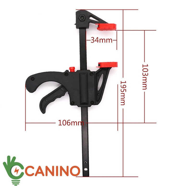 + Pistol grip với bóp kích hoạt thắt chặt kẹp, nhanh chóng cố định sản phẩm kẹp