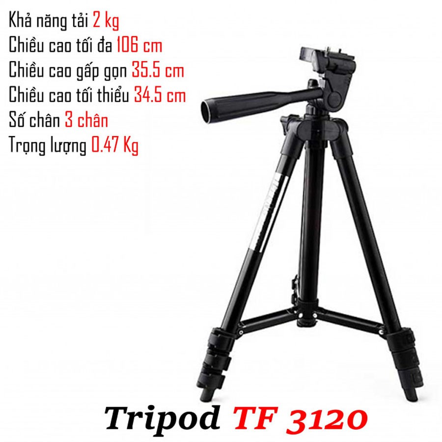 - Tripod Hợp Kim TF-3120 Cho Điện Thoại hỗ trợ cho máy ảnh compact, camera hành trình hoặc điện thoại trong việc quay phim, chụp ảnh, có thể sử dụng thuận tiện cả trong nhà và ngoài trời.