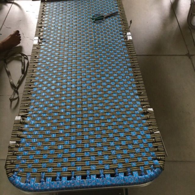 Vị trí nằm được đan bằng sợi tổng hợp thấm hút mồ hôi tốt, nằm nặng không sợ bị trùng, không đứt. Sợi tổng hợp có ưu điểm là độ đàn hồi tốt tạo cho người sử dụng cảm giác nằm êm ái.