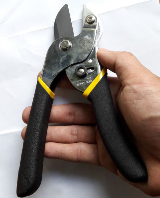 - Kéo cắt cành kim loại được làm bằng chất liệu théo 65# với cán được đúc nguyên khối kim loại và được khắc hình vảy cá chống trượt và êm tay khi sử dụng. Lưỡi kéo sắc bén cùng với lò xo đàn hồi cao tạo lực cắt mạnh mẽ. Đặc biệt, kéo còn có thêm lò xo dự phòng để thay thế, tiết kiệm chi phí khi mua kéo mới.- Kéo cắt cành là dụng cụ làm vườn được dùng cắt cành hoa, cà phê, cây cảnh…. Có thể dùng làm quà tặng hoặc dùng trong gia đình.