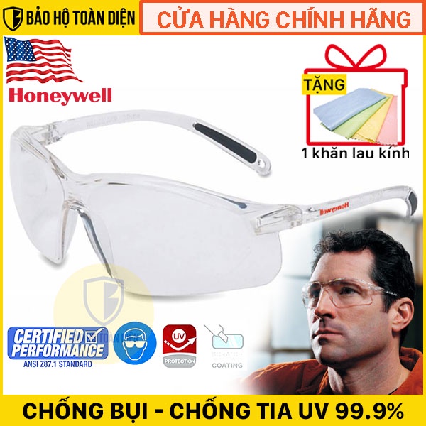 {GIÁ HỦY DIỆT} Kính chống bụi Honeywell Sperian A700 trắng [ TẶNG KHĂN LAU KÍNH ]. Kính bảo hộ chống bụi, chống tia UV