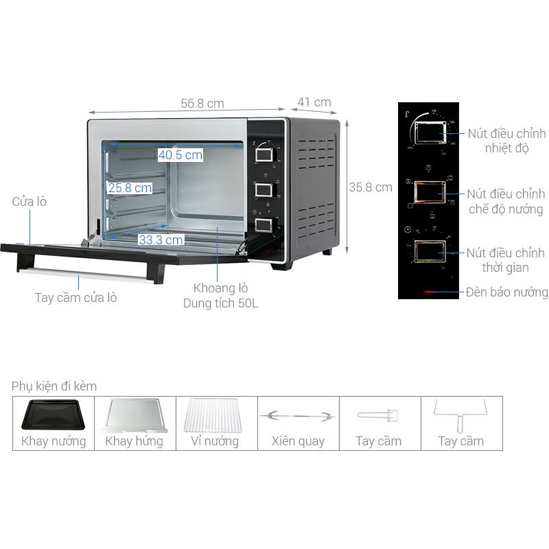 Thông số kỹ thuật Lò nướng Sanaky VH5099S2D 50 lít