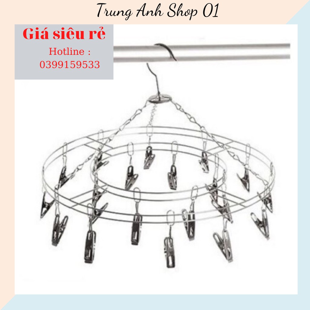 [Giá Huỷ Diệt] Mắc dù tròn, mắc treo quần áo inox 20 kẹp