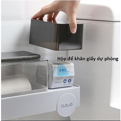- Kệ đựng khăn giấy trong nhà vệ sinh có nắp hộp được thiết kế bằng phẳng giúp có thêm diện thích đặt thêm những đồ dùng như nước rửa tay, điện thoại, rất tiện dụng.