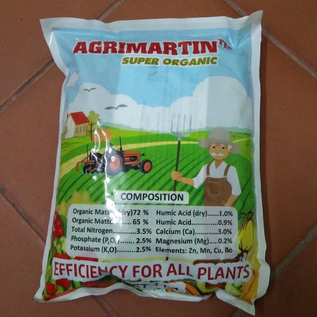 Bạn cần phân bón giúp tăng năng suất và chất lượng sản phẩm cây trồng của bạn? Bạn muốn có loại phân có thể dùng bón rễ, bón lót, thúc cho tất cả các loại cây trồng? Bạn muốn phân này phải làm từ hữu cơ tự nhiên? Vậy bạn sẽ muốn có Phân bón hữu cơ sinh học AGRIMARTIN SUPER ORGANIC từ Green City chúng tôi. AGRIMARTIN SUPER ORGANIC COMPOSITION: Organic Matter 70%. Total Nitrogen 4%. Phosphate 2,2%. Potassium 2,5%. Humic Acid 3%. Fulvic Acid 2%. Humidity 17%. pH 5 EFFICIENCY FOR ALL PLANTS NET 1KG ƯU ĐIỂM Phân hữu cơ Bỉ 100% khoáng chất tự nhiên từ gà có cả axit Humic và Fulvic. SUPER ORGANIC! Cải tiến sự sống cũng như hệ thống của đất trồng cây của bạn. Cân bằng giữa đất, vi sinh vật đất và cây trồng của bạn. Phân bón hữu cơ không gây ô nhiễm môi trường. Hạt phân bón sinh thái và hợp vệ sinh. HƯỚNG DẪN SỬ DỤNG PHÂN BÓN HỮU CƠ: Rau màu và gạo: 400-500kg/hecta. Cây ăn trái: 1000kg/hecta. Những cây khác: 500-600kg/hecta hoặc 1-2kg/cây/lần. Bảo quản nơi khô ráo và thoáng mát. Đóng kín miệng bao khi sử dụng dang dở. Cảnh báo an toàn lao động: Không gây nguy hiểm khi hít phải ở điều kiện bình thường. Không được ăn. Không tiếp xúc với vết thương hở. Để xa nguồn thực phẩm và tầm tay trẻ em. NÊN MUA PHÂN BÓN HỮU CƠ BỈ SUPER ORGANIC Ở ĐÂU?CHÍNH SÁCH BÁN HÀNG