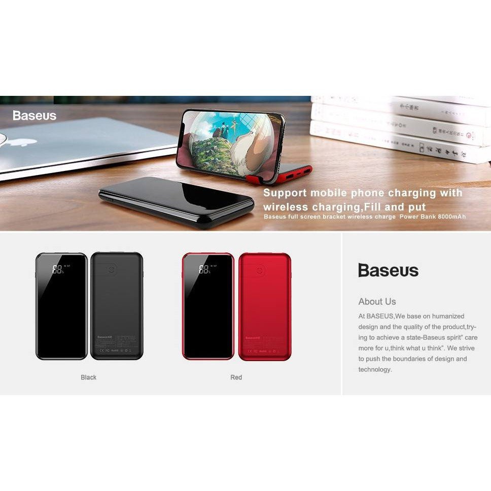- Bộ sạc không dây Baseus Bracket là một pin sạc dự phòng thời trang với chức năng sạc không dây và giá đỡ điện thoại thông minh có thể điều chỉnh.