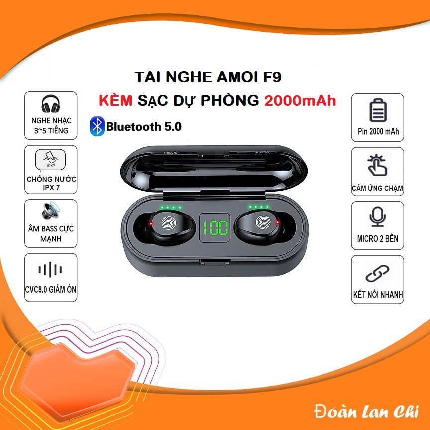 Giới thiệu [ GIÁ HUỶ DIỆT] Tai nghe true wireless AMOI F9 | bản QUỐC TẾ | nút cảm ứng | Bluetooth 5.0 | Pin 280 giờ | sạc dự phòng