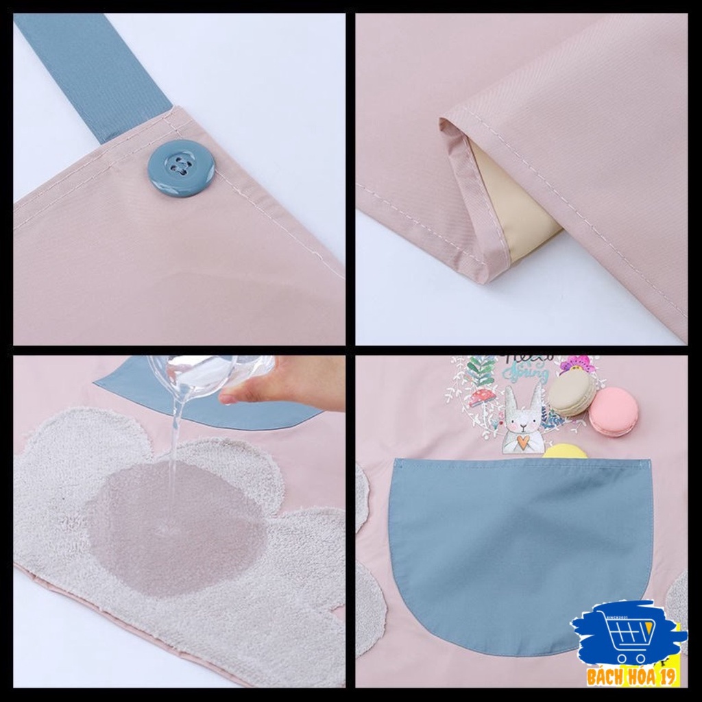 (GIÁ HỦY DIỆT) Tạp dề hoa nhà bếp có tấm lau tay không thấm nước và bám dầu -có túi đựng-ảnh thật
