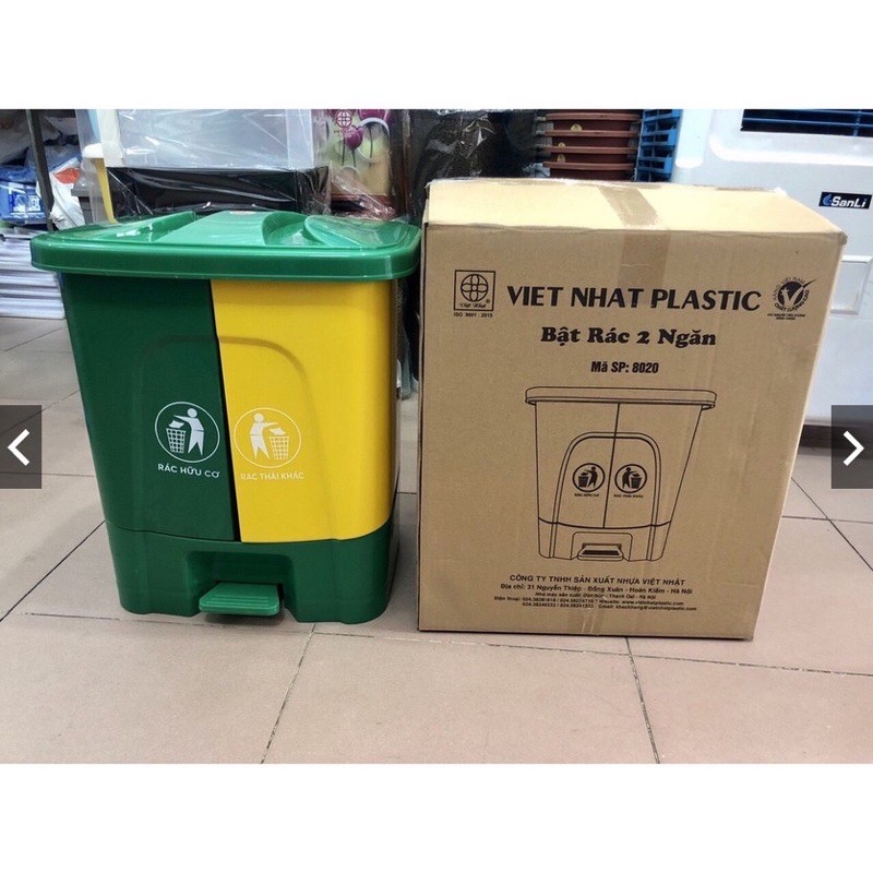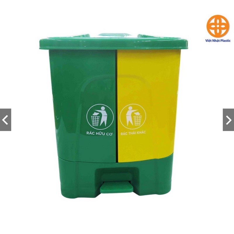 Thùng rác 2 ngăn 40L phân loại rác Việt NhậtThùng rác nhựa đạp chân 2 ngăn phân loại rác hữu cơ và vô cơ rất tiện lợi cho người sử dụng.