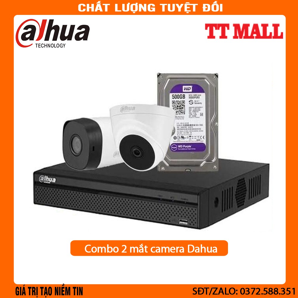 {Khuyến mãi cực khủng}Trọn bộ 2 mắt camera dahua 1080p Kèm ổ cứng 500G lưu trữ + 10m dây liền nguồn