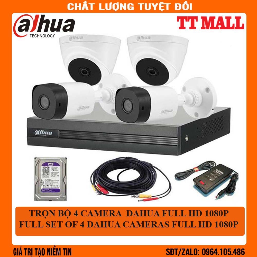 [Mã ELHAMS5 giảm 6% đơn 300K] {Giá Hủy Diệt}Trọn bộ 4 camera DAHUA Full HD 1080p + HDD 500G tặng mỗi camera 15m dây