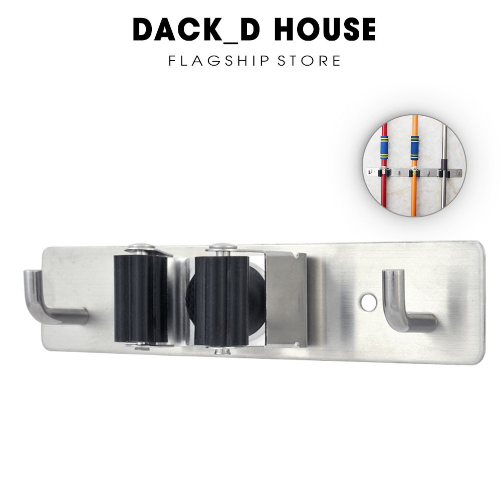 Giá inox 304 giúp treo chổi Dack D House, 2 chấu móc đồ 1 chấu mốc chổi tiện lợi, kèm theo keo dán 3M siêu chắc chắn