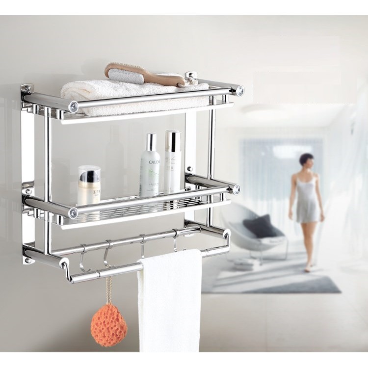 - Kệ treo khăn 2 tầng inox giúp cho không gian phòng tắm nhà bạn thêm sang trọng.