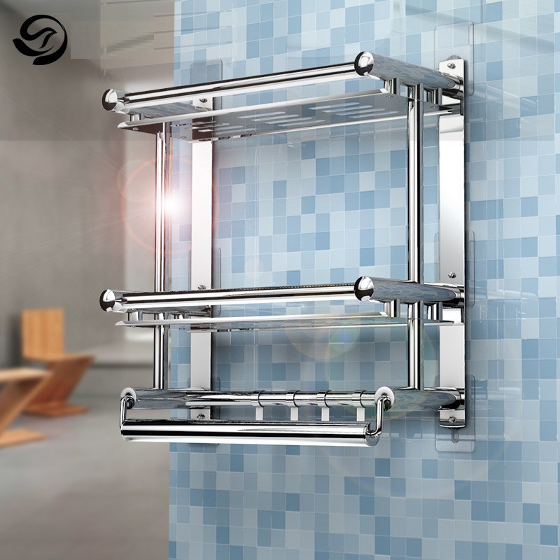 Giá Inox 304, Kệ nhà tắm treo khăn đồ dùng nhà tắm lắp đặt dính tường không cần khoan - GI01