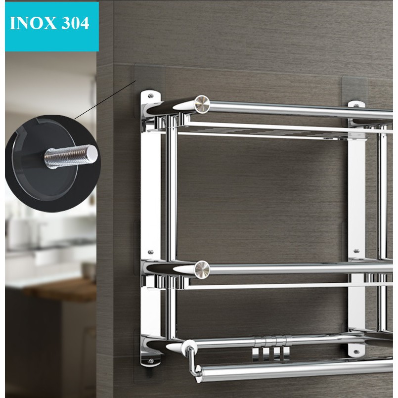 MOON DECOR xin kính chào quý kháchThông tin sản phẩm Giá Inox 304, Kệ nhà tắm treo khăn đồ dùng nhà tắm lắp đặt dính tường không cần khoan GI01 :