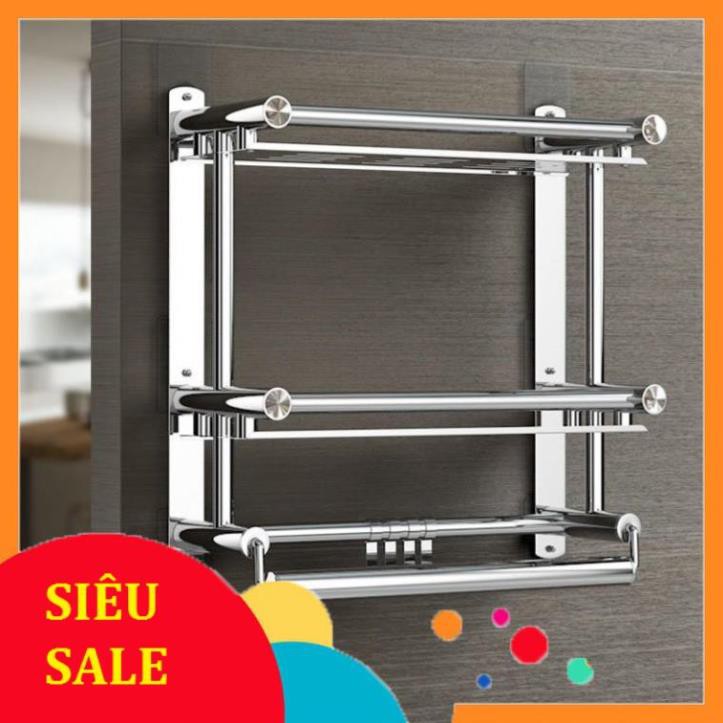 Giá Inox 304, Kệ nhà tắm treo khăn đồ dùng nhà tắm lắp đặt dính tường không cần khoan