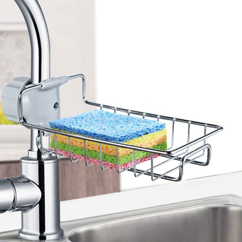 - Ai ngại khoan tường hoặc các giá nhựa, thủy tinh lâu lâu đóng cặn canxi nhìn chướng mắt lắm thì đổi qua sản phẩm này nha- gắn trực tiếp lên thanh inox vòi rửa khỏi đục đẽo luôn.