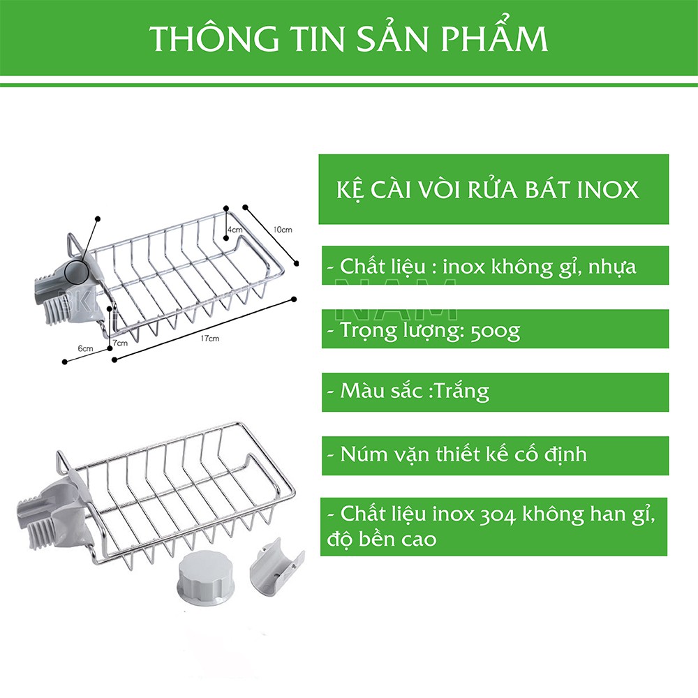 🔷 Giá dùng để cài vòi nước nhà bếp, nhà tắm đựng xà bông, búi rửa bát… gọn gàng và sạch sẽ