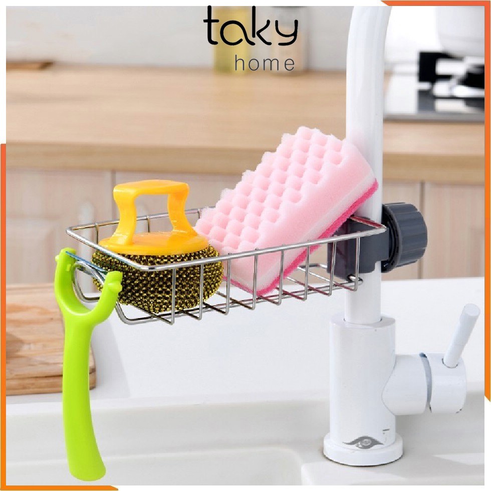 Giá Treo Vòi Đựng Đồ, Giẻ Rửa Chén Bát - Kệ Gắn Vòi INOX Để Đồ Giẻ Rửa Chén Bát. TakyHome- Giá inox tiện dụng treo vòi nước đựng lưới rửa bát, bàn chải, cọ xoong, xà bông… chất liệu inox 304 giúp không gian của bồn rửa bát và không gian chậu rửa thêm gọn gàng, ngăn nắp đặc biệt khu vực bồn rửa bát thường ẩm ướt. Nhà bạn nào cũng nên có sản phẩm tiện dụng này nhé. Dùng cực thích luôn ạ!