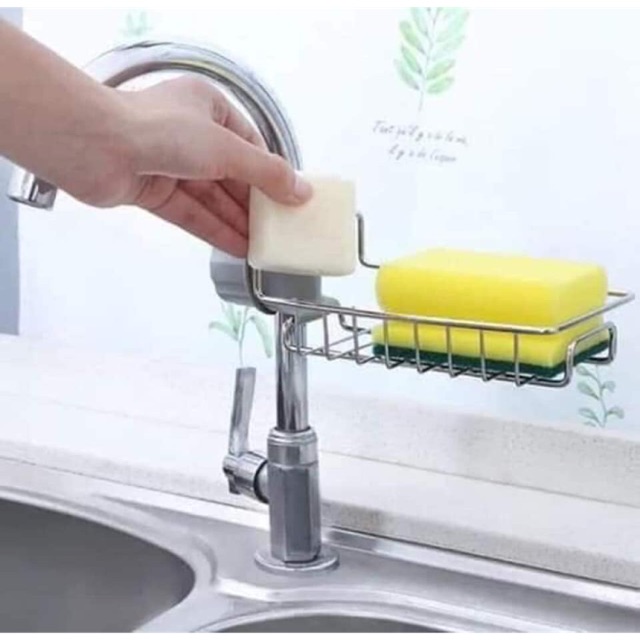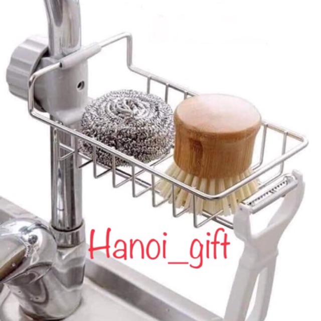 Giá inox đựng lưới rửa bát,cọ xoong,xà bôngtreo vòi nước bồn rửa bát tháo lắp nhanh