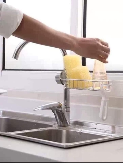 Giá inox treo vòi nước đựng lưới rửa bát, bàn chải, cọ xoong,xà bông… chất liệu inox 304 giúp không gian thêm gọn gàng, ngăn nắp đặc biệt là vệ sinh khu vực bồn rửa bát thường ẩm ướt