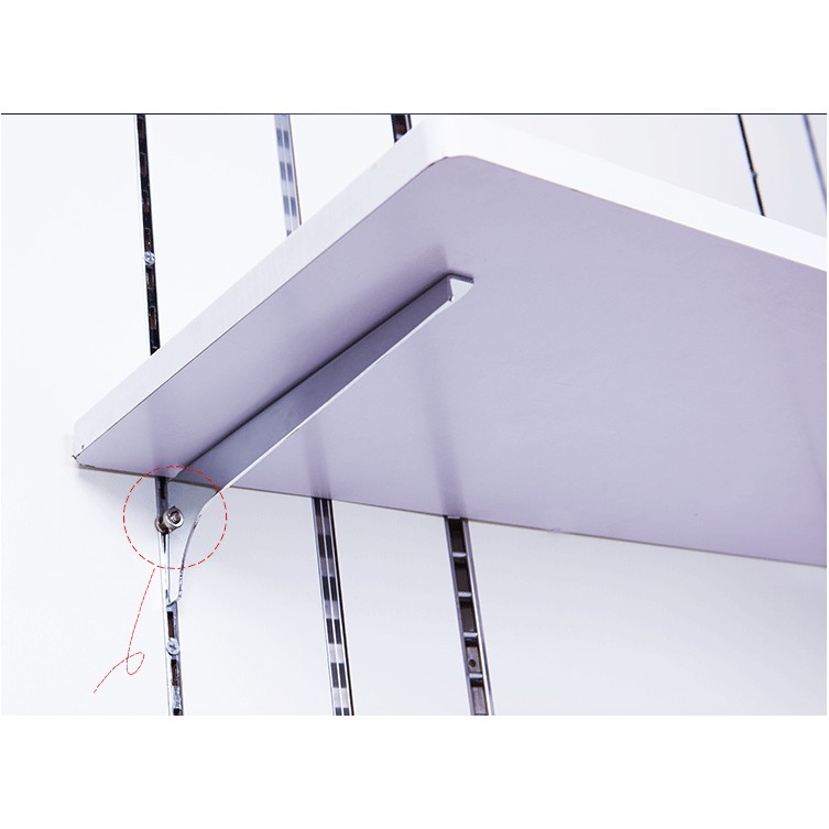 Tay đỡ kệ có thể kết hợp với THANH RAY GẮN TƯỜNG. Tùy vào trọng lượng hàng hóa hoặc vật dụng trưng bày ta có thể kết hợp tay đỡ với những loại thanh ray có khả năng chịu lực khác nhau khác nhau.