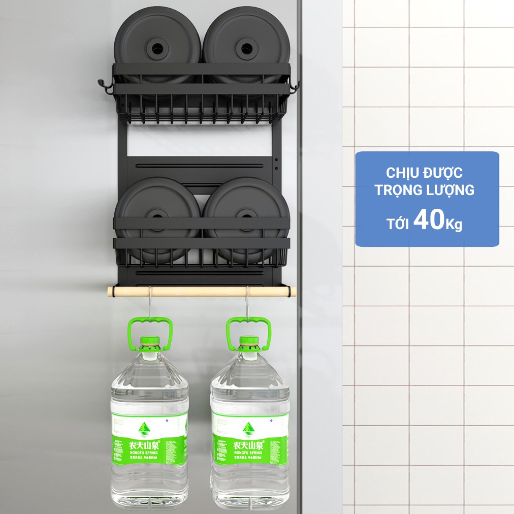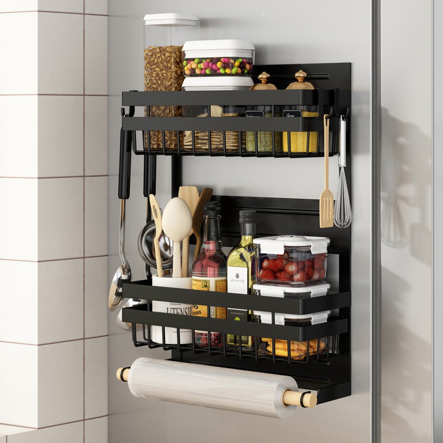 [𝗙𝗿𝗲𝗲𝘀𝗵𝗶𝗽] Giá kệ đa năng dán tủ lạnh VANDO sơn đen CAO CẤP chống han gỉ