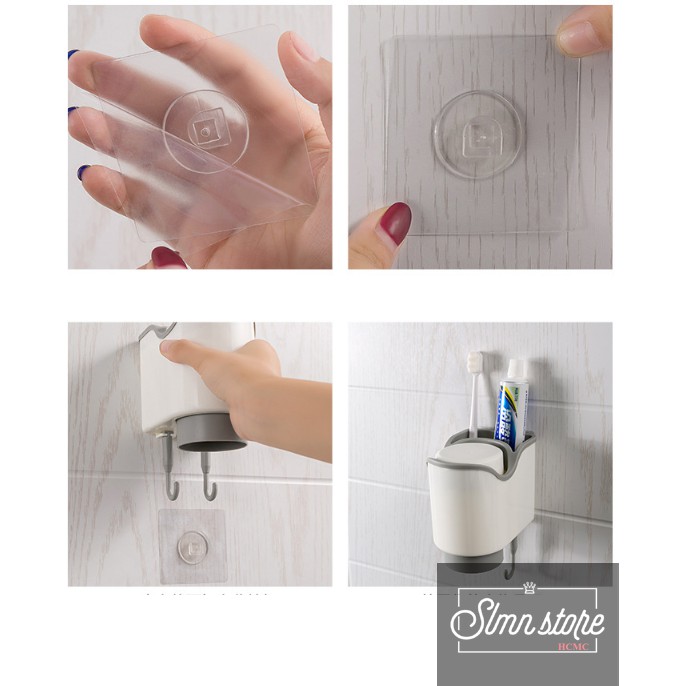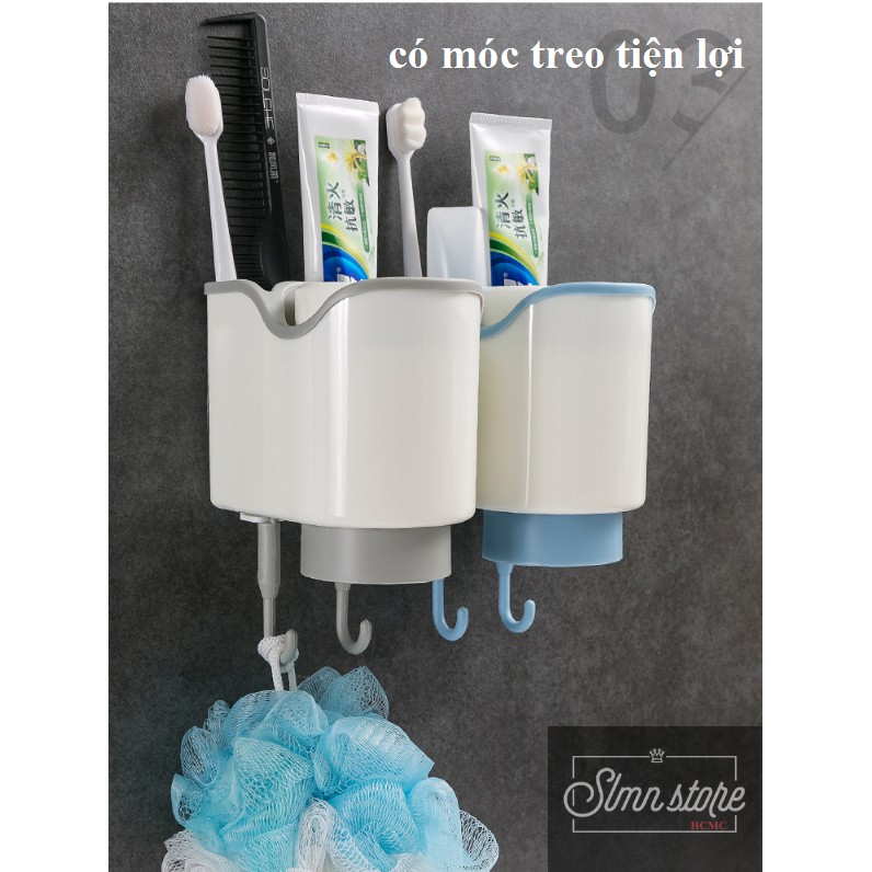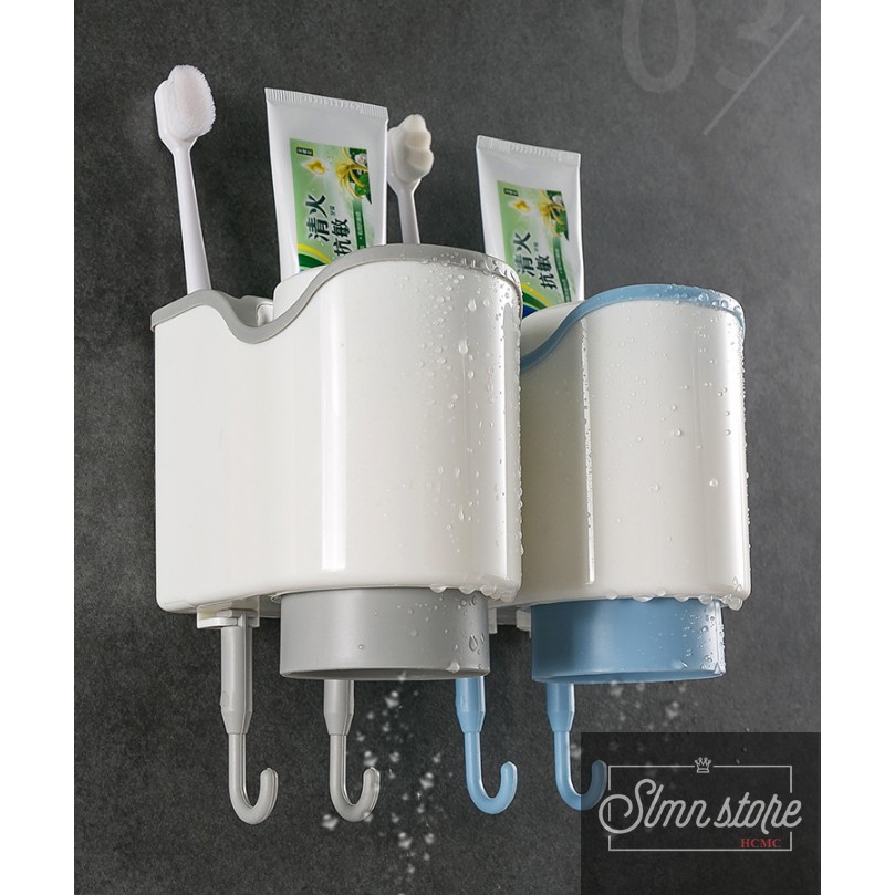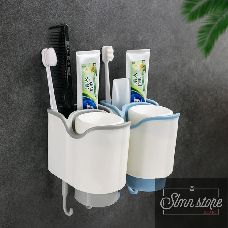 Giới thiệu Giá kệ dán tường treo [HAI] 2 ly hút nam châm, bàn chải, kem đánh răng tiện lợi (tặng kèm 2 ly). SD2_TreoBC-2ly