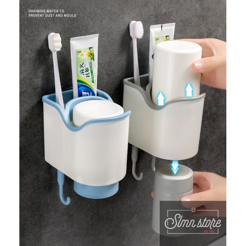 Giá kệ dán tường treo [HAI] 2 ly hút nam châm, bàn chải, kem đánh răng tiện lợi (tặng kèm 2 ly). SD2_TreoBC-2ly