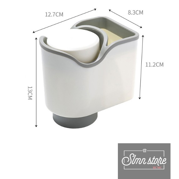 Thiết kế cốc hút nam châm siêu tiện lợi, có móc nhỏ có thể gắn các vật dụng như thun buộc tóc, bông tắm,….